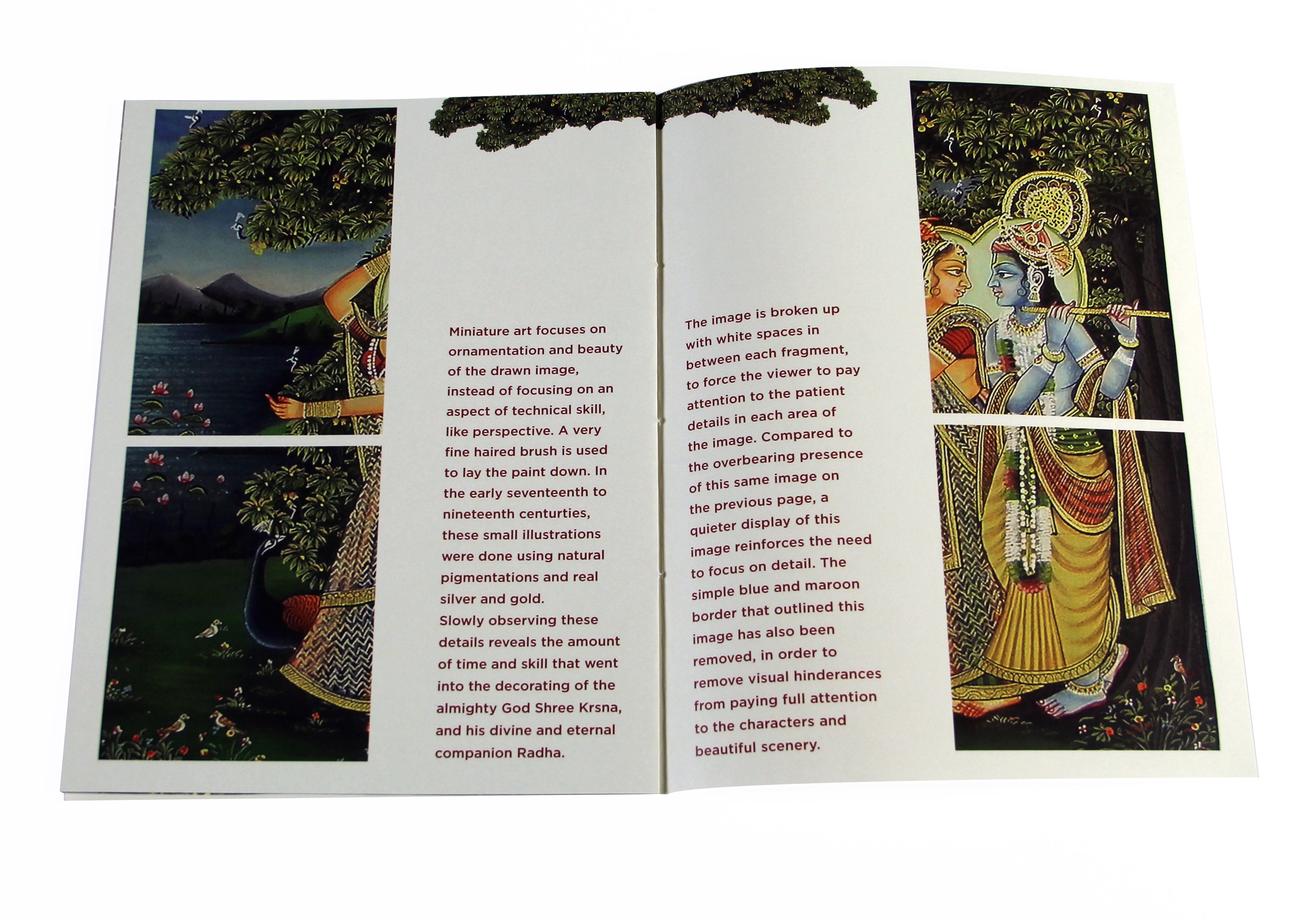 This book was born out of research into Miniature Art, which is one of the main art forms in Indian History. The subjects of these paintings are mostly religious & literary. Radhaa& Krsna were my focal point as Krsna is the Supreme Lord in Hindu mythology.